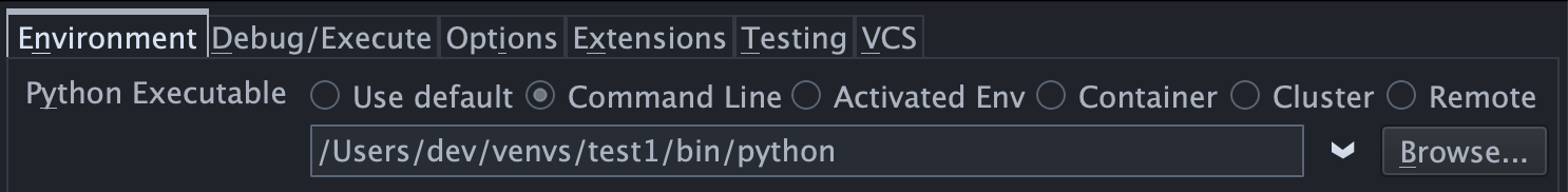 Activated environments can be used in the same way in other settings where a Python Executable can be specified, for example for Launch Configurations and in a Remote Host configuration.
