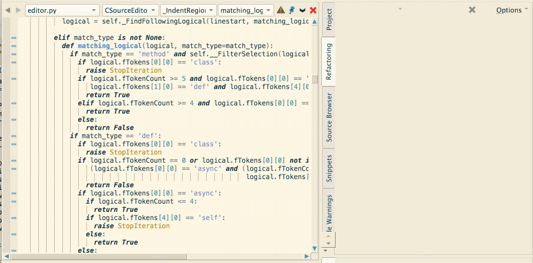 Notice that Wing replaces all occurrences of the selected expression logical.fTokens with a reference to the new variable tokens. Using refactoring to introduce a new variable is usually much easier and less prone to errors than making edits of this type manually.